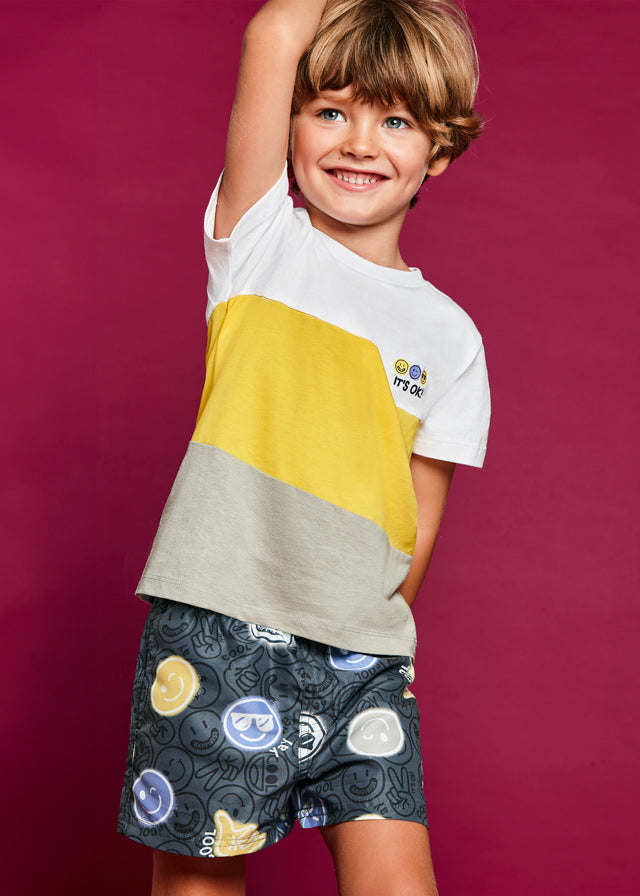Vestito il tuo bambino in grande stile e rispettando l'ambiente con il nostro costume bermuda stampato realizzato in poliestere riciclato! Il tessuto di alta qualità offre comfort e vestibilità, mentre il design accattivante porterà allegria e divertimento nei momenti di gioco al mare.