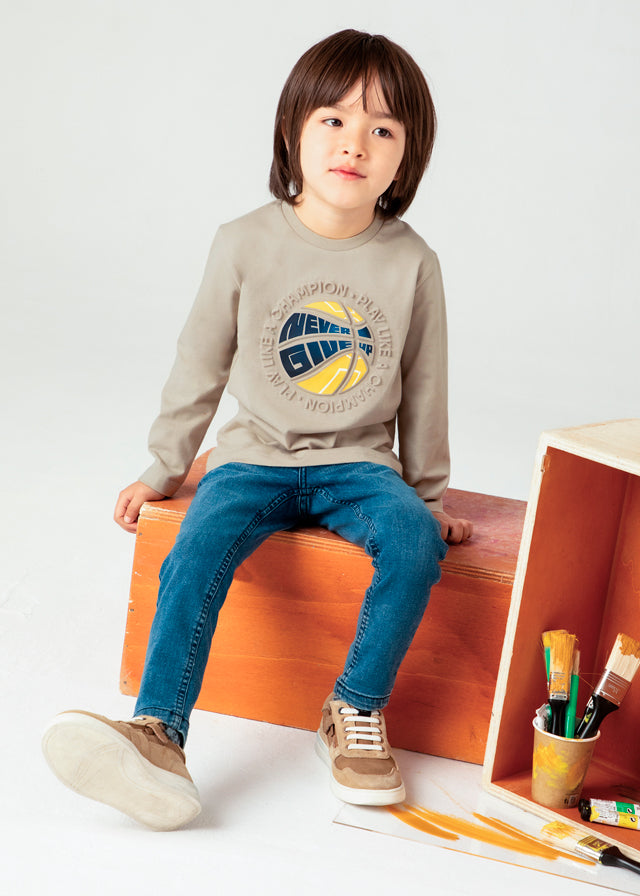 Questa maglietta m/lunga per bambino è realizzata al 100% in cotone, garantendo comfort e morbidezza sulla pelle delicata dei più piccoli. Il rilievo sulla maglietta dona un tocco di originalità e stile, rendendola perfetta per ogni occasione. Facile da lavare e resistente, è un capo che durerà a lungo.