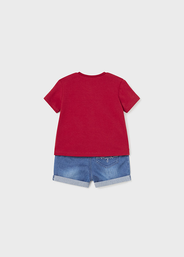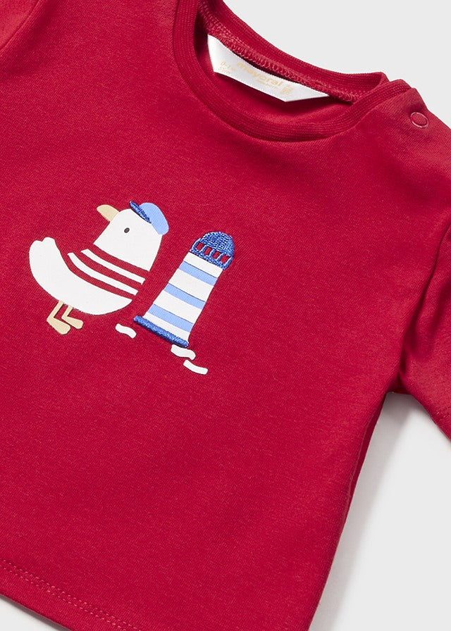 Maglietta manica corta per neonato. Girocollo. Bottone sulla spalla per facilitarne la vestibilità. Design stampato.