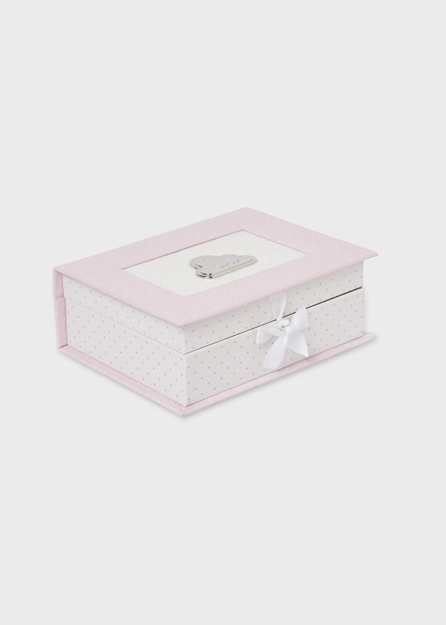 La Scatola dei ricordi per neonati Mayoral è l’accessorio ideale per conservare con cura e stile i momenti più preziosi dei primi mesi di vita del tuo bambino. Realizzata con materiali di alta qualità, questa scatola offre un design elegante e funzionale che permette di organizzare e proteggere i piccoli oggetti e ricordi come il primo ciuccio, una ciocca di capelli o le prime fotografie. Perfetta per custodire ogni dettaglio unico e prezioso, è un regalo raffinato e duraturo per i neo genitori che desiderano preservare per sempre la memoria di questo periodo speciale. 19712-074/075/-076 - - Mayoral