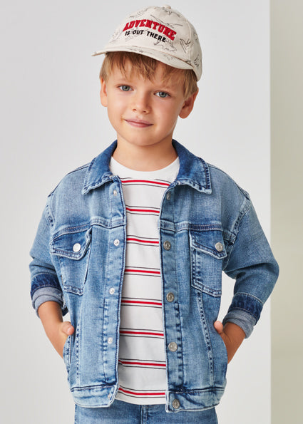 Capo ECOFRIENDS contiene cotone organico. Giubbotto manica lunga per bambino. Colletto modello camicia. Chiusura con bottoni nella parte anteriore. Tessuto in jeans comodo e abbinabile per look di tutti i giorni. Tasche funzionali nella parte anteriore.