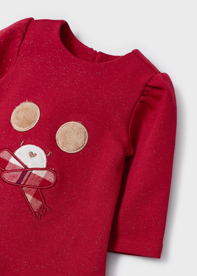 Vestito manica lunga per neonato. Chiusura con bottoni a pressione nella parte posteriore che facilitano la vestibilità del capo. Design con volant decorativi nella parte bassa.