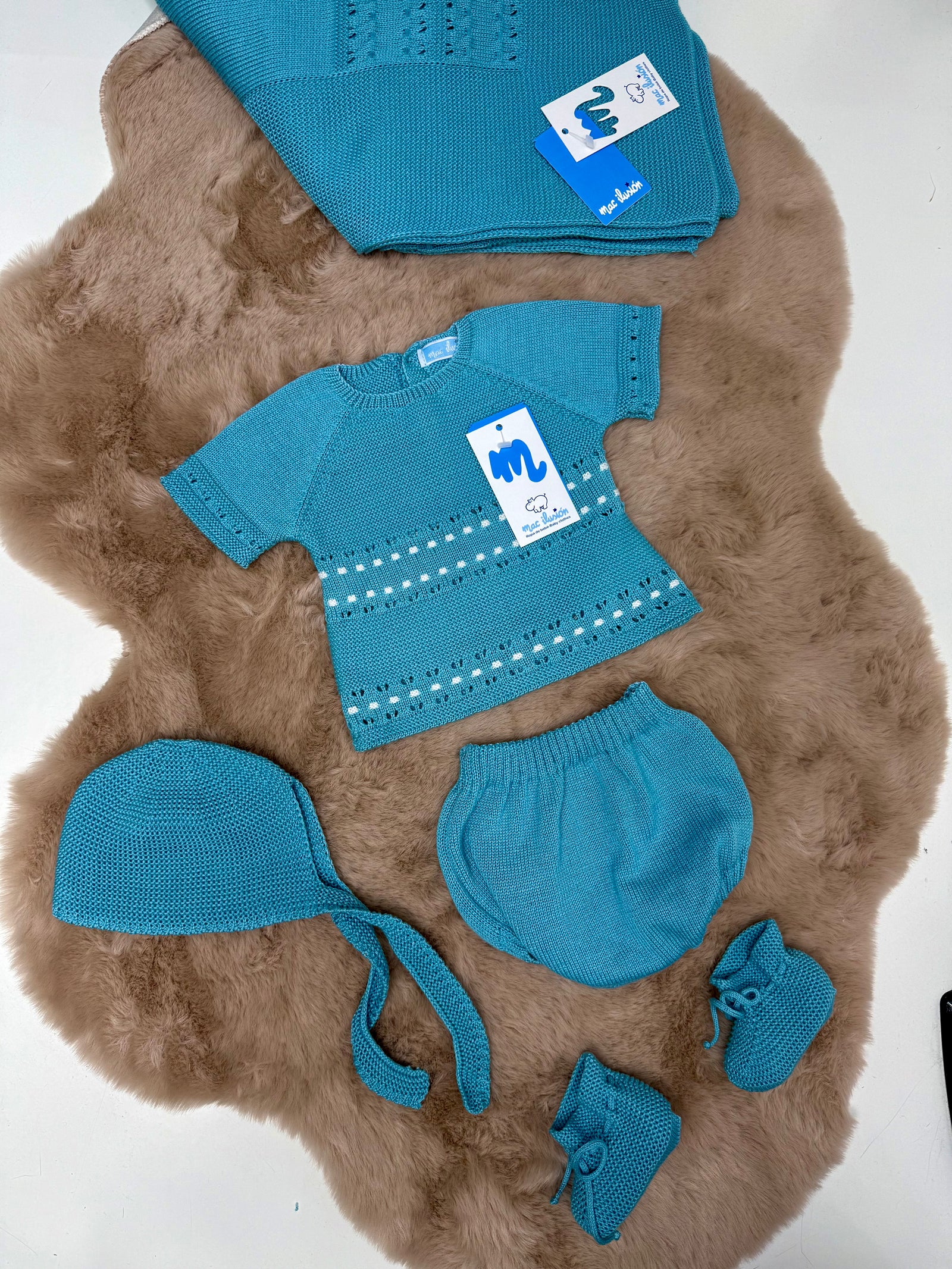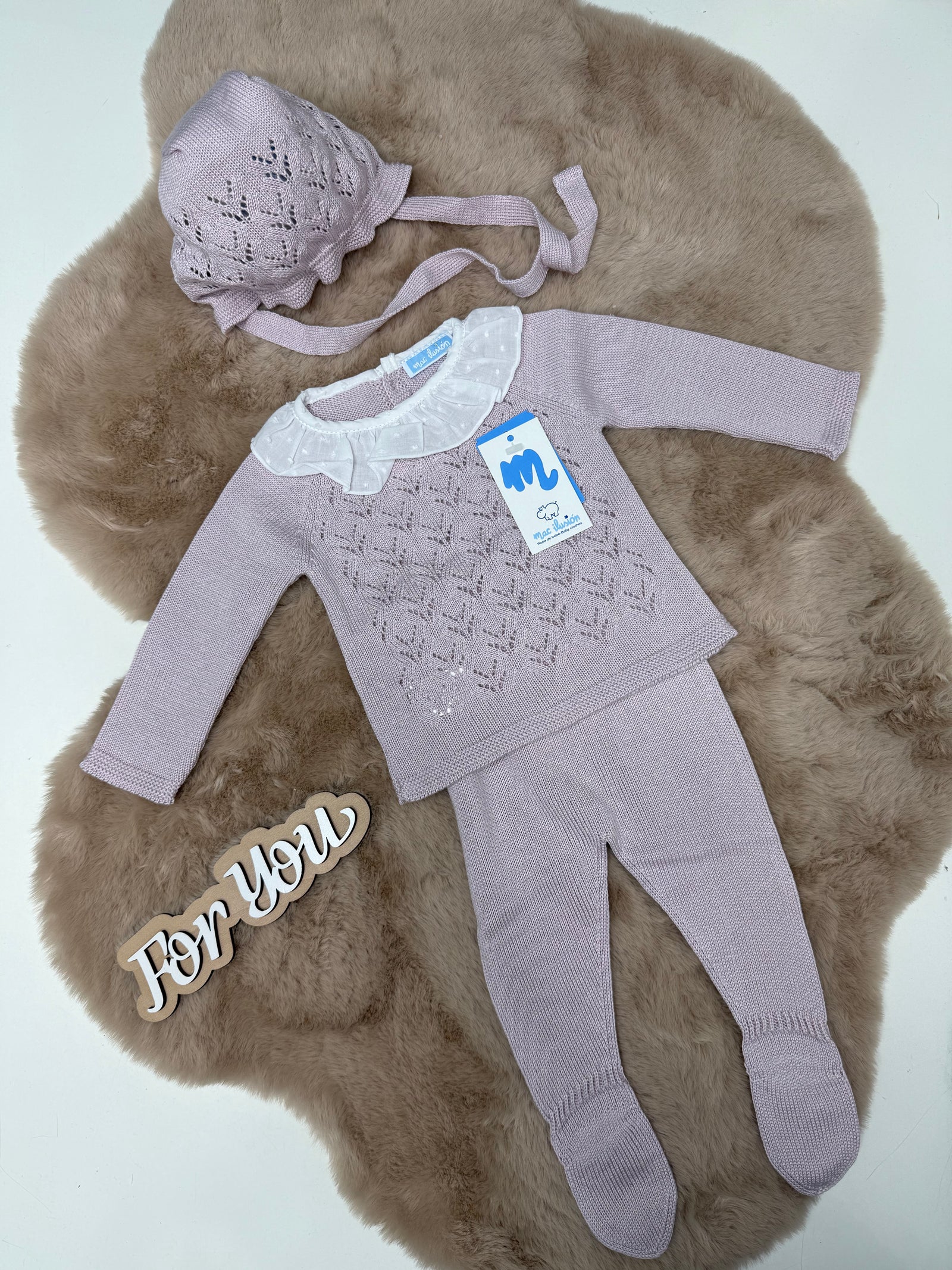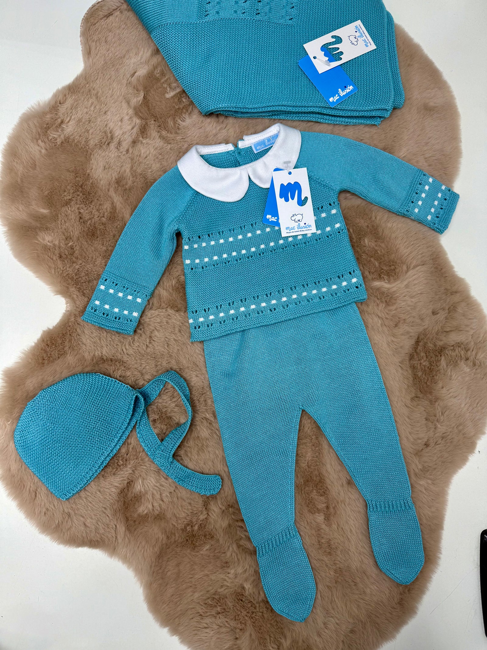 Coordinato 3 pezzi in filo neonata Mac ilusion