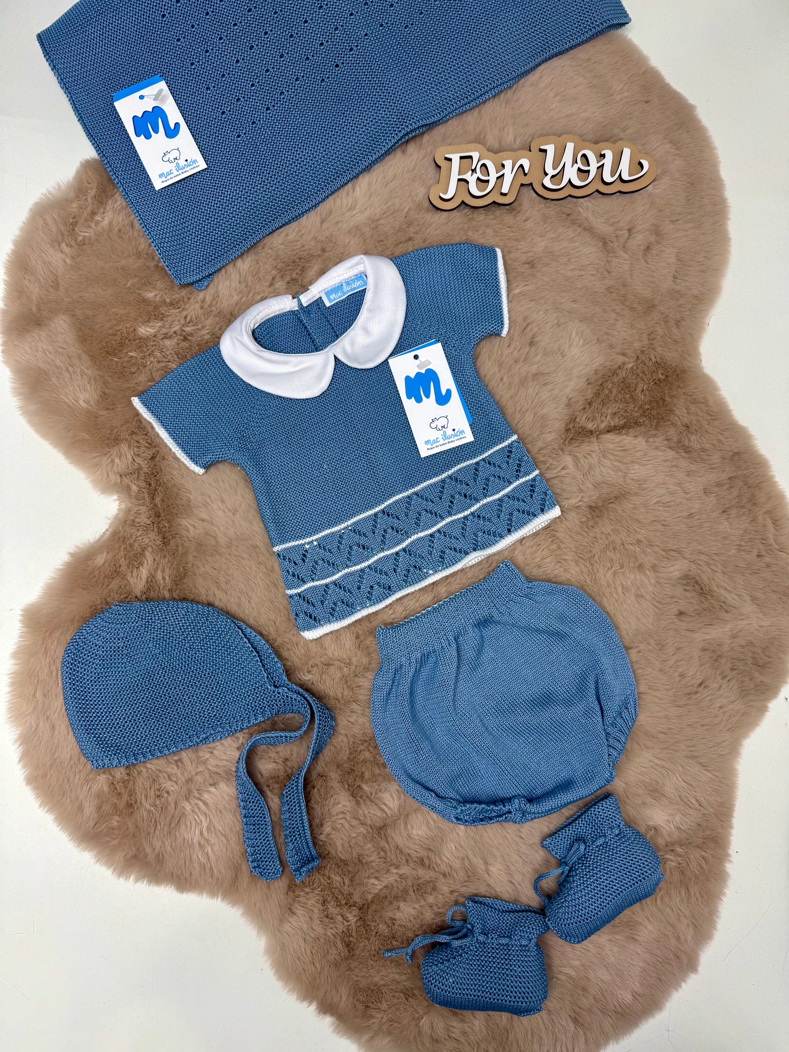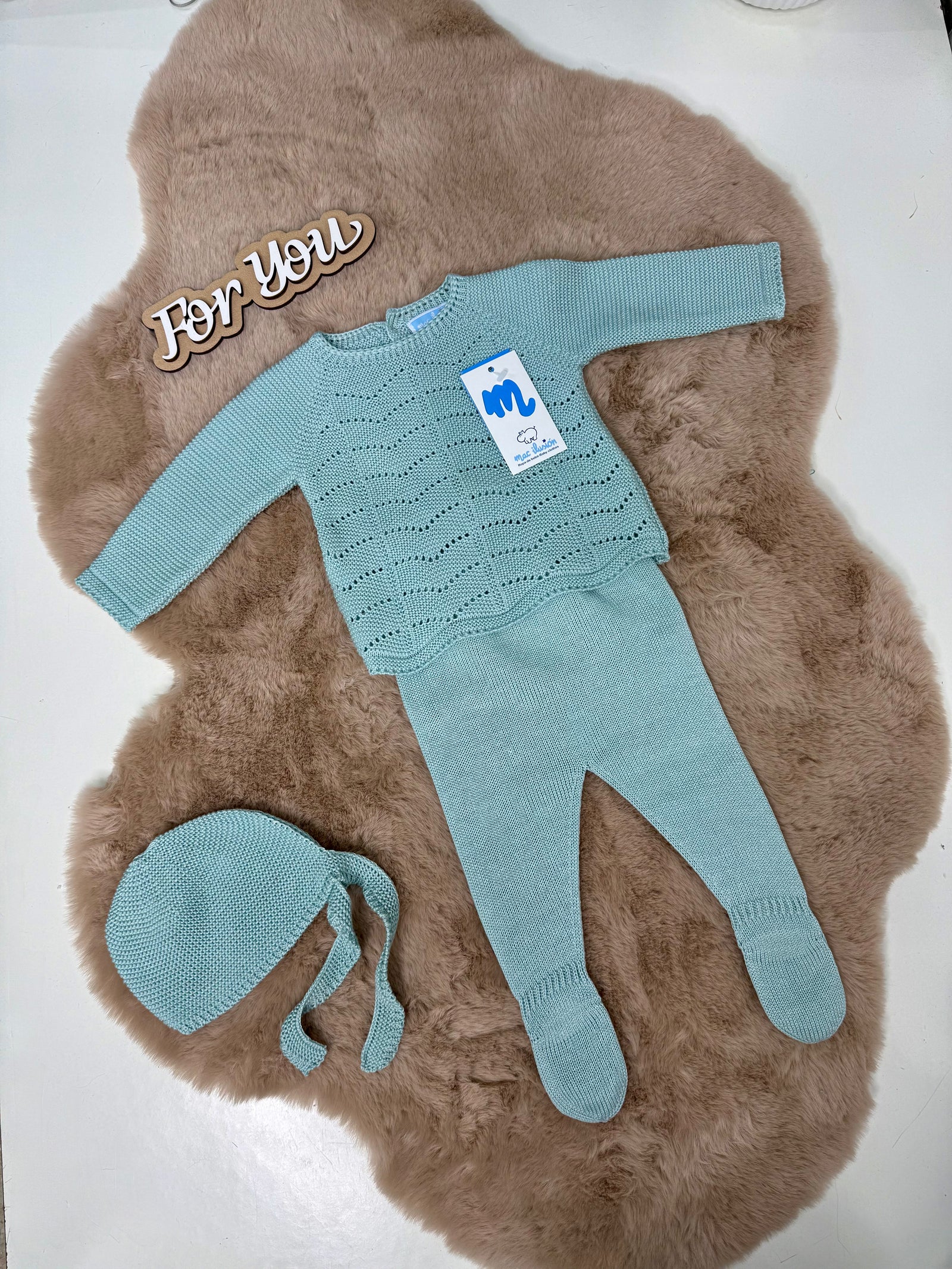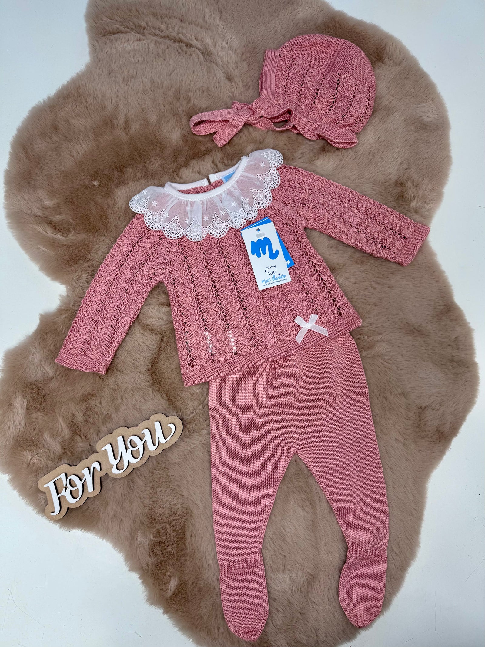 Coordinato 3 pezzi in filo neonata Mac ilusion
