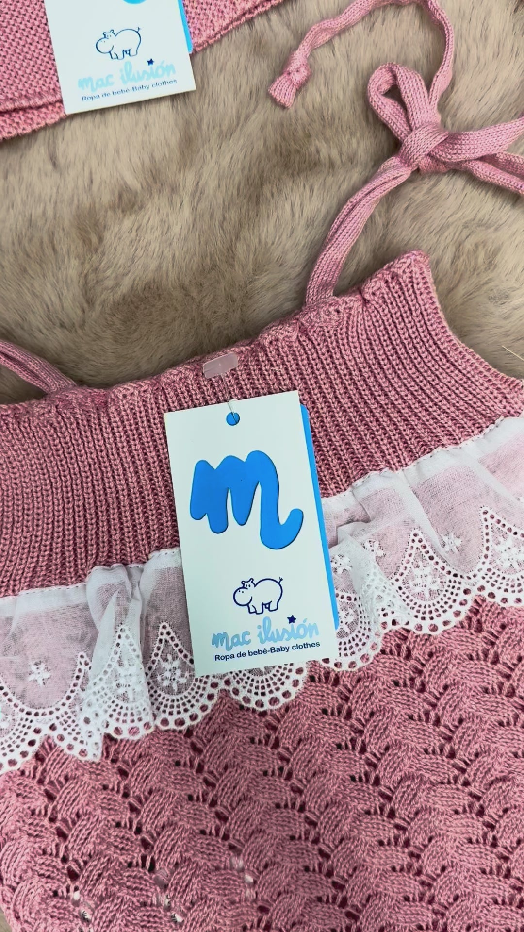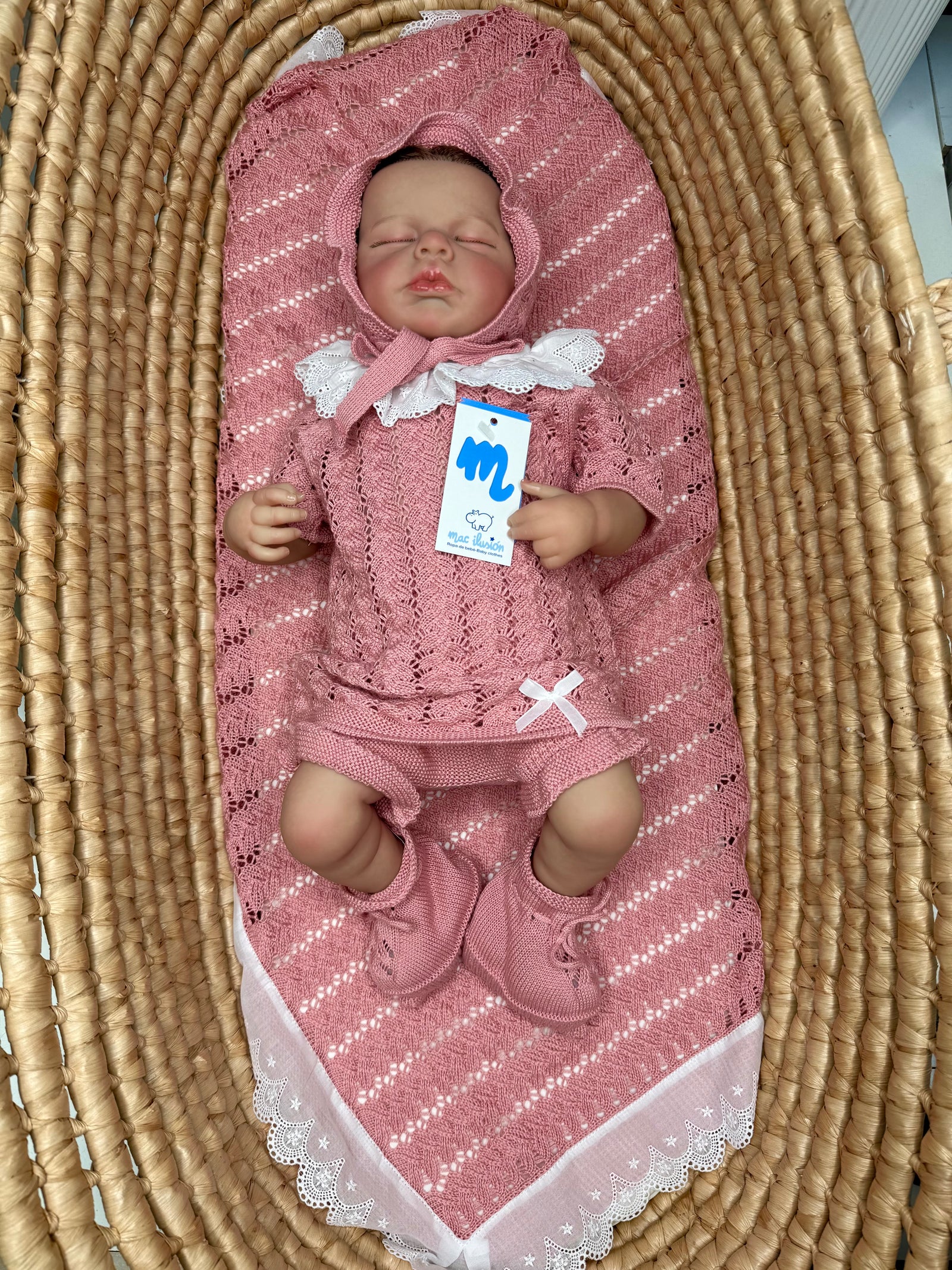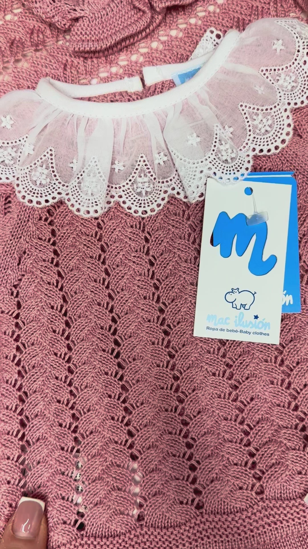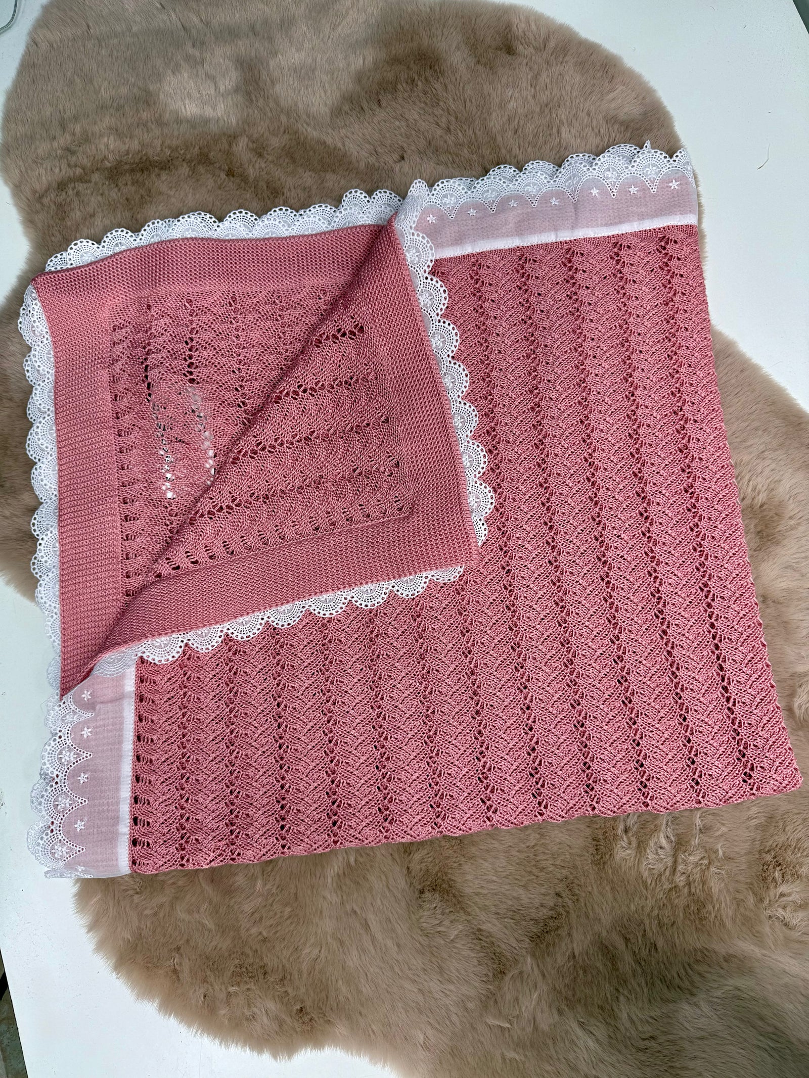 Scialle rosa antico con pizzo neonata Mac Illusion