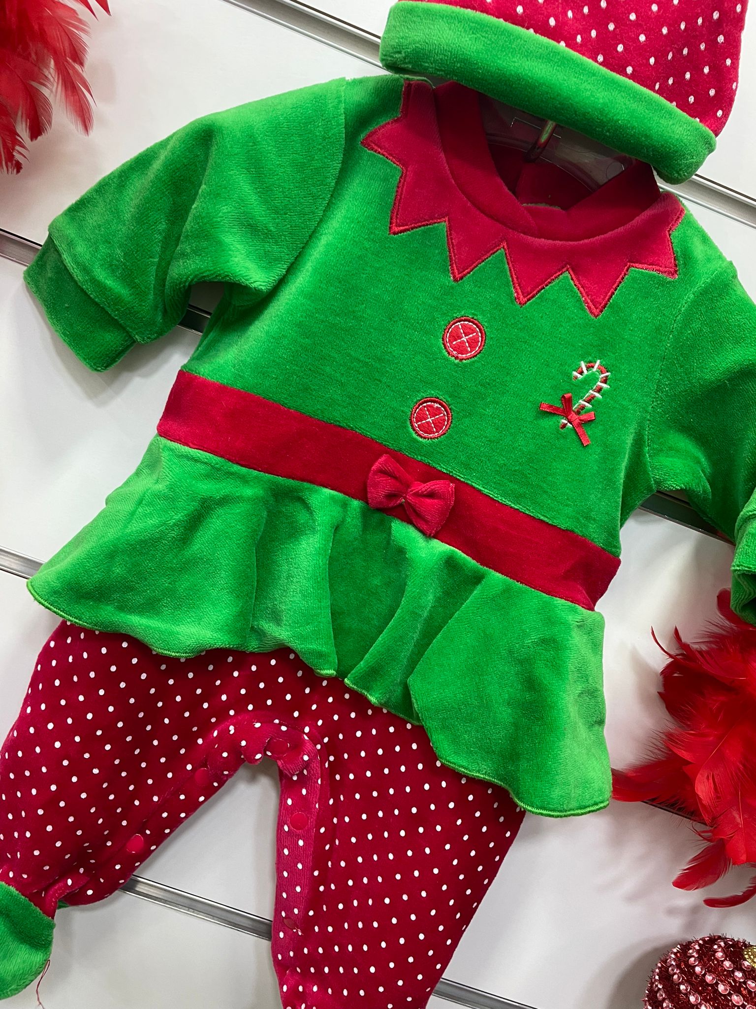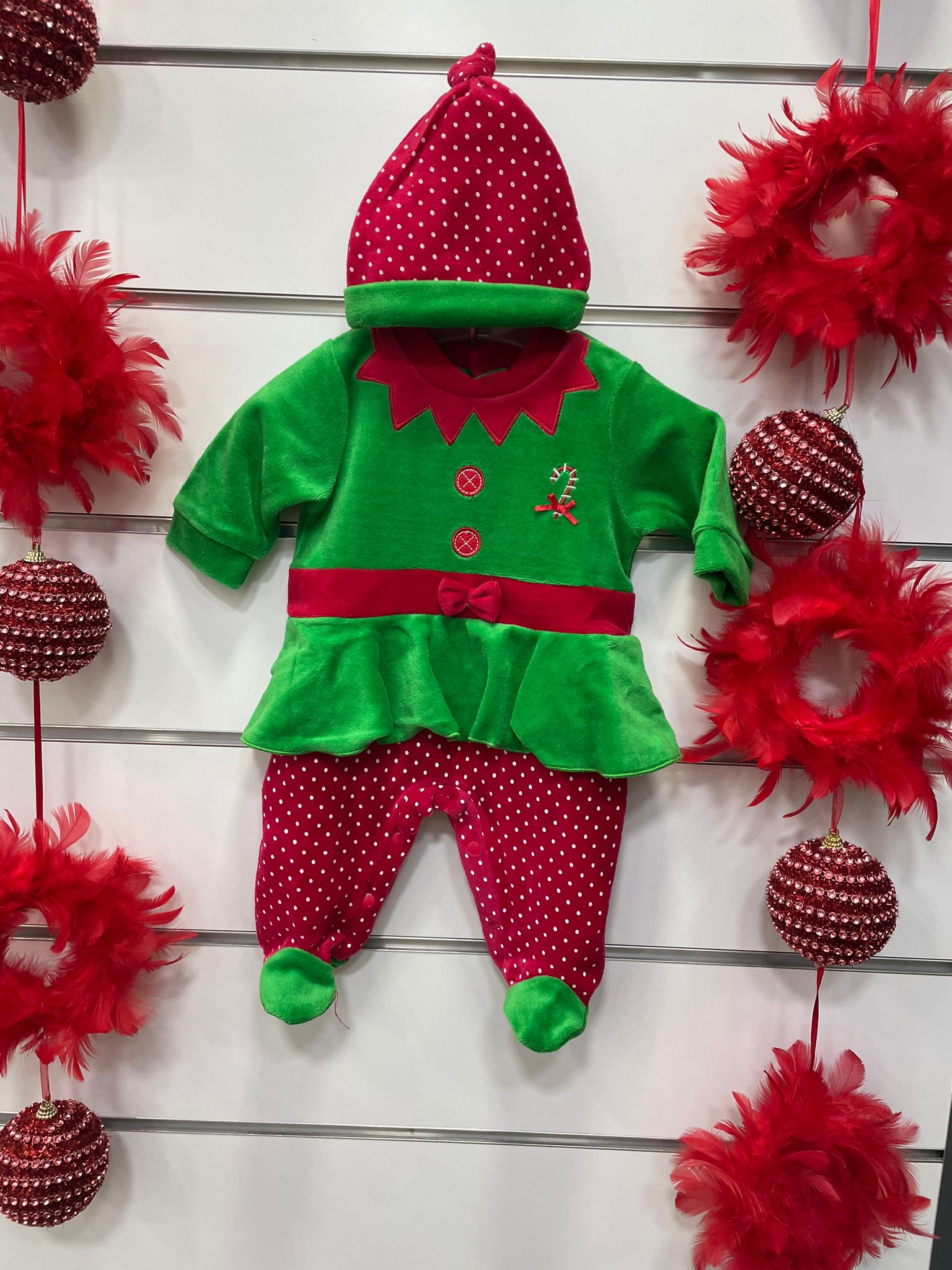 Tutina per neonata da elfo natalizia di ciniglia con cappello Realizzata con materiale di qualità, questa tutina da elfo natalizia garantisce comfort ed eleganza per la tua neonata. Ottiene un perfetto mix di vestibilità e stile.