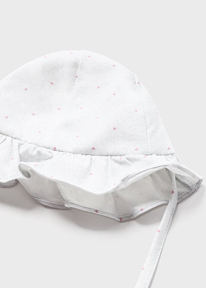 Cappello neonato realizzato in tessuto morbido e leggero che donerà momenti di freschezza durante i giorni più caldi della primavera-estate. Elementi decorativi: volant decorativo.