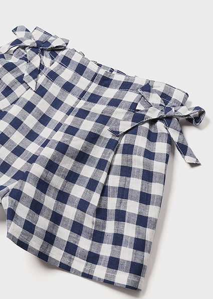 Pantalone corto modello shorts per bebé. Elastico regolabile in vita che garantisce un miglior taglio del capo. Tessuto dall'aspetto fresco e moderno di lino. Elementi decorativi: fiocchi. Design stampato.