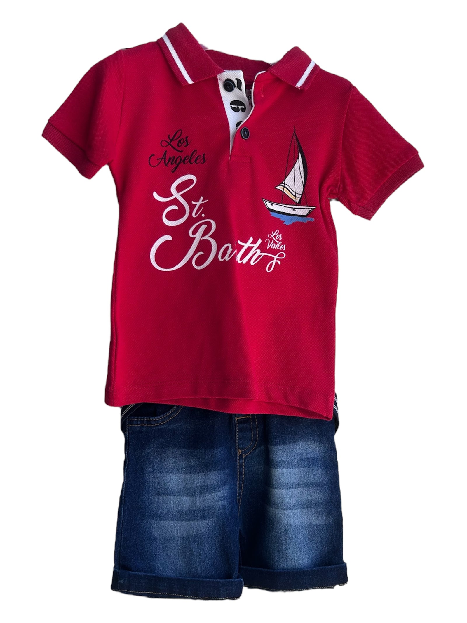 Baby boy's complete shirt, shorts and cap with visor