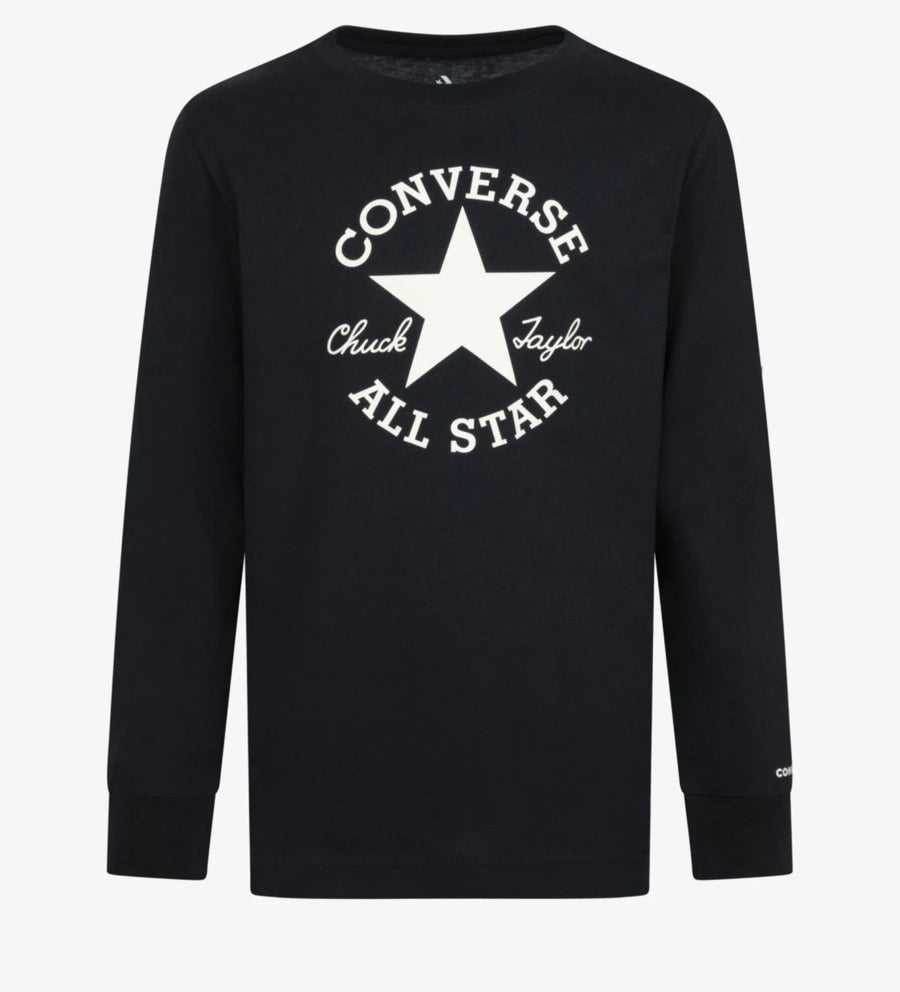 Dress your little one in the black Converse long sleeve tee. The logo on the front adds a touch of style without sacrificing comfort. Made with quality materials, this tee is perfect for any occasion. Add more versatility to your little one's wardrobe with the Converse long sleeve tee.