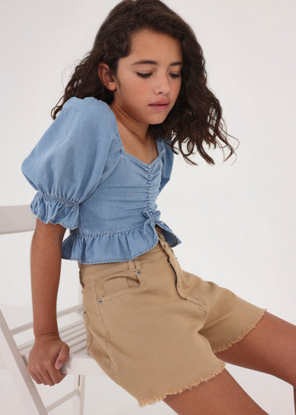 Pantaloncino jeans con cintura ragazza